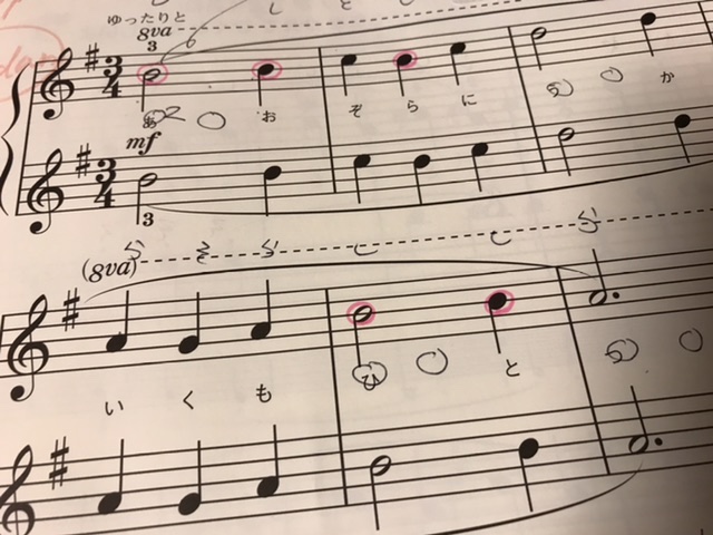 音符にふりがな(ドレミ)を書いてきちゃうお子さんがたまにいます。