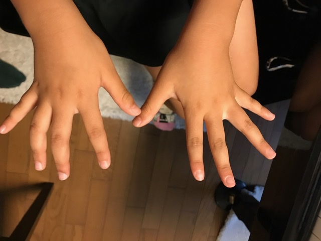 「あのねえ、今日ねえ。、プールだったから、爪切らないと入れないの、だから切ってあるの。」