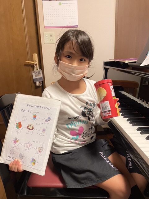宿題に出されている曲以外に、レッスンでやった曲の中から練習に加えて、レッスン時に1分以内に弾き切れたら合格です。