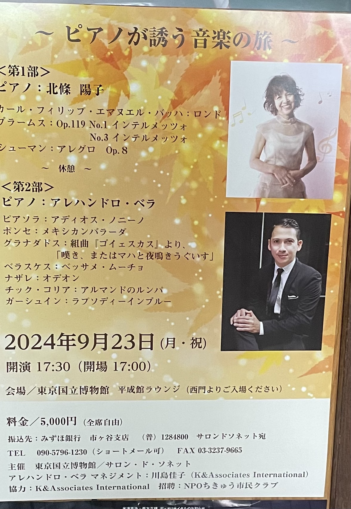 右上にうつっているかたピアニストの米津真浩さん、千葉市出身の方です。千葉市出身ということで千葉公演は美浜文化でのコンサートです。
