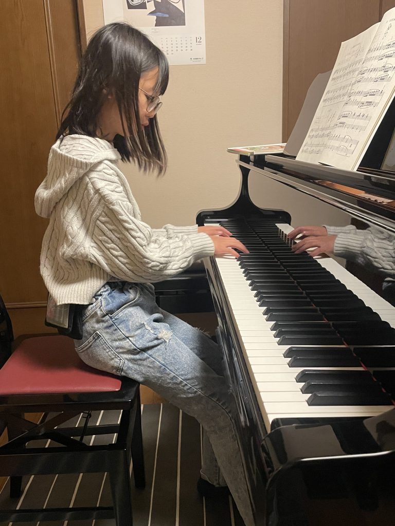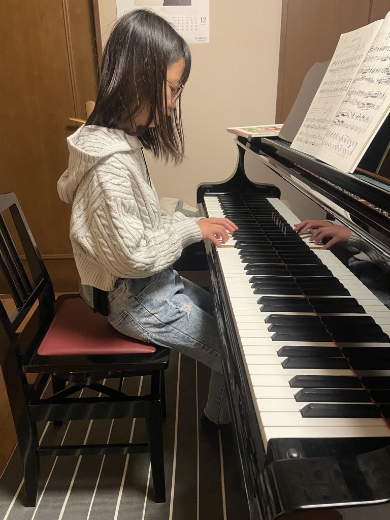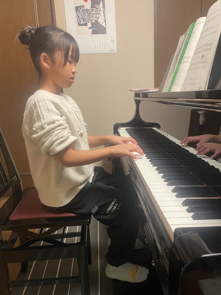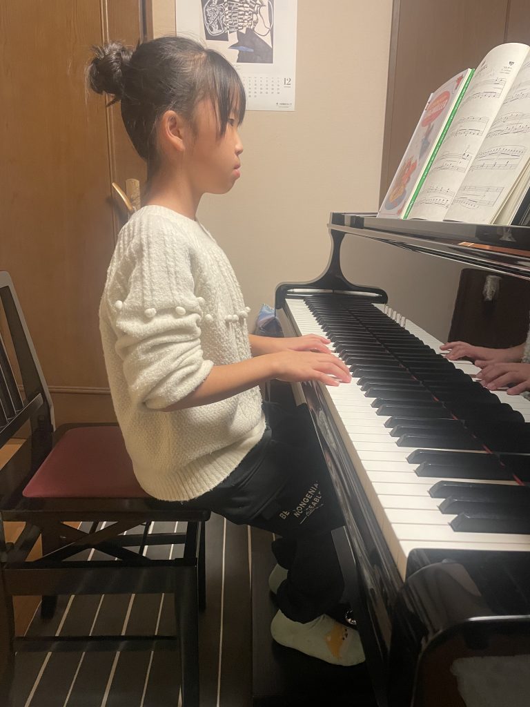 十分に足の長さもあっても、うっかり前寄りに座ってしまうということはよくあります。また椅子が近いのにそのまま座って弾き始めてしまっても弾きにくいです。しかしその弾きにくさが姿勢にあるということに気がつかないと治すこともできません。レッスンではそれに気がついてもらうように声がけします。ちょっとした調整ですが、弾きやすくなり、楽譜と鍵盤の視線の動きもよくなるので、姿勢については気を付けていきたいところです。