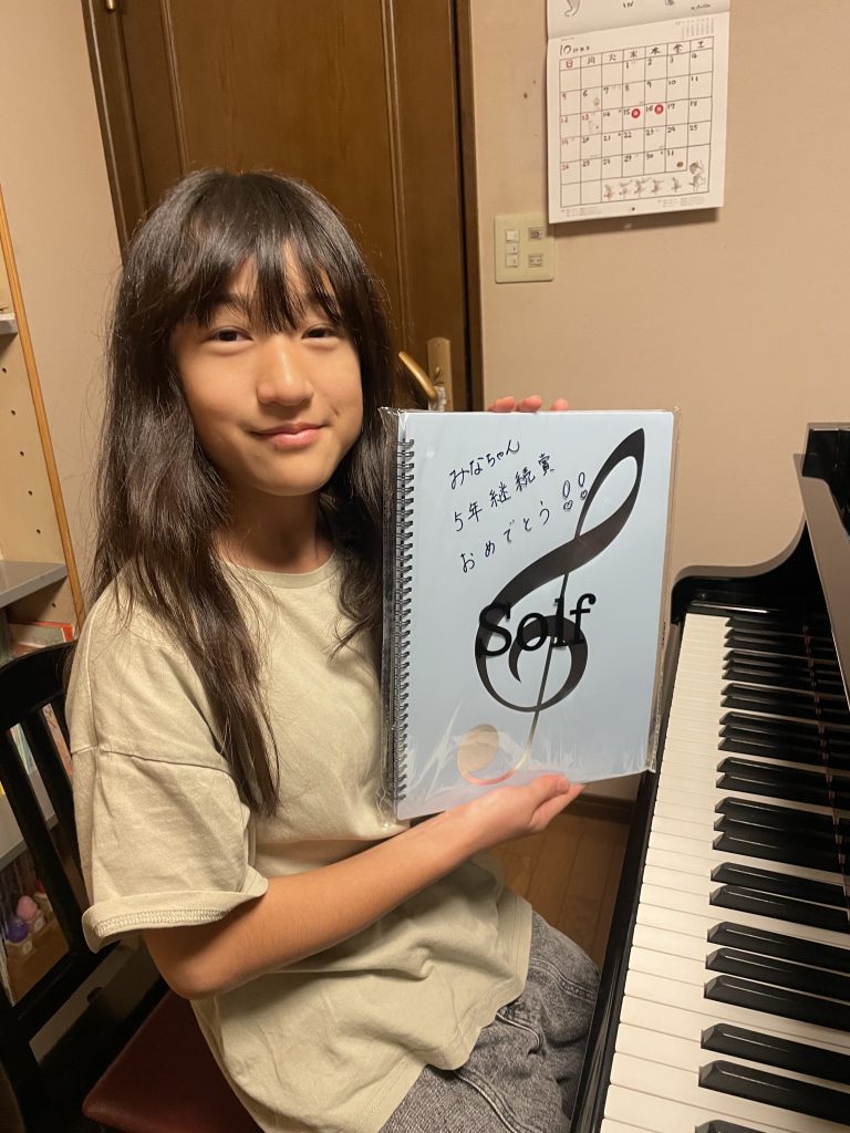 その節目を迎えられた喜びを表したく、5年続けることのできた生徒さんにささやかなお祝いを贈っています。