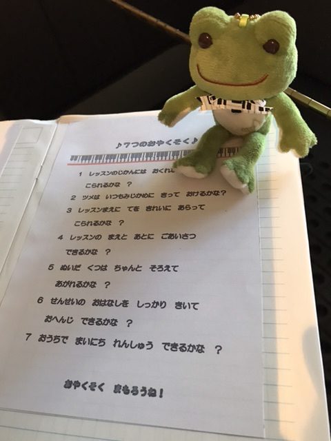 音の木ピアノ教室では「7つのおやくそく」というのをレッスンノートに貼っています。