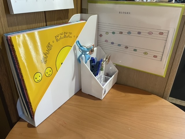 お子さんにとって楽譜を何冊も出し入れすることはコツを掴むまでに時間を要するものです。楽譜のサイズは教科書などよりもかなり大きいので、小さな手のひらでそれらを扱うことは慣れが必要なんですね・・・